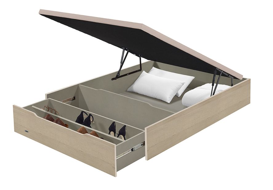 Este é um tipo de estrado que se eleva e sob ele, existe um espaço que pode ser usado para arrumação. Dependendo da sua escolha, pode encontrar diversas opções com várias capacidades de armazenamento.